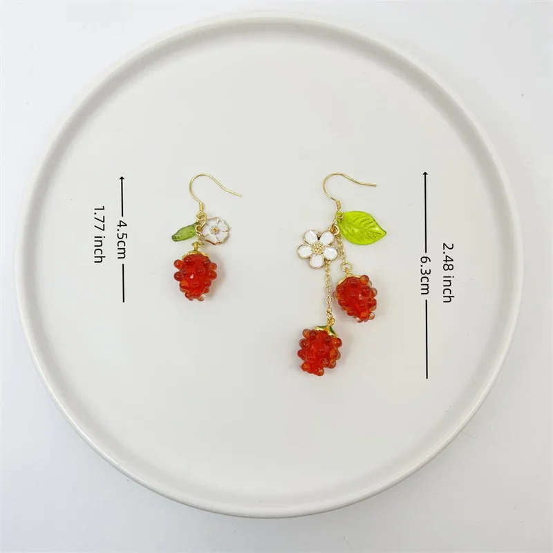 Lovely Small Raspberry Earrings for Women Green Leaves White Flower Red Berry Fruit Earrings Sweet Girl Summer Jewelry Gift